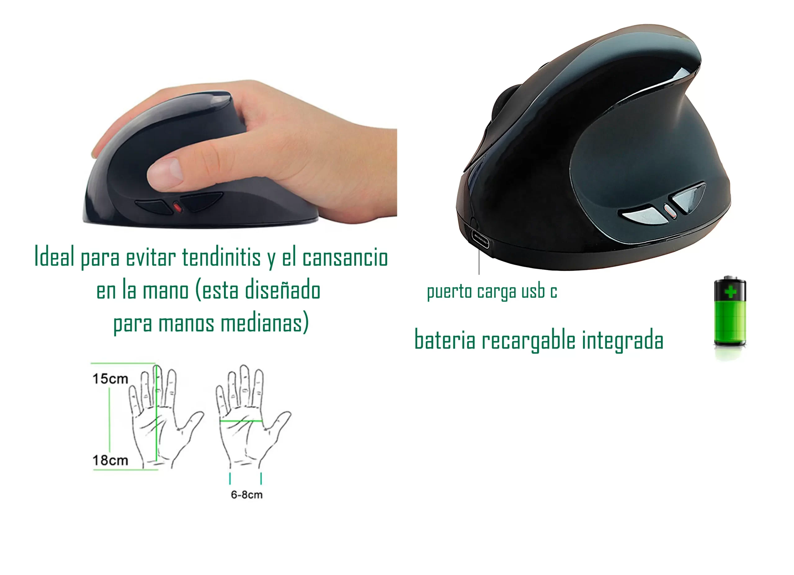 Mouse con batería recargable con conector tipo c.